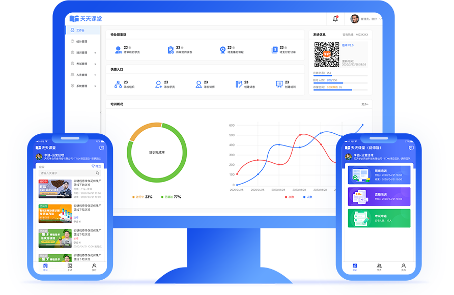天天课堂是农民职业教育平台“天天学农”面向政企推出的一款在线培训教学平台 平台支持导入“天天学农资源库”功能,也支持自主创建培训课堂,实现多场景互动教学。为提升培训效率,平台可自动识别登陆对象,精准指派学习考试内容。天天课堂系统还设置学习任务解锁式、平台操作追踪化、考试测验智能化等模式保障培训效果。天天课堂,为政企单位提供专业、权威的在线培训工具。